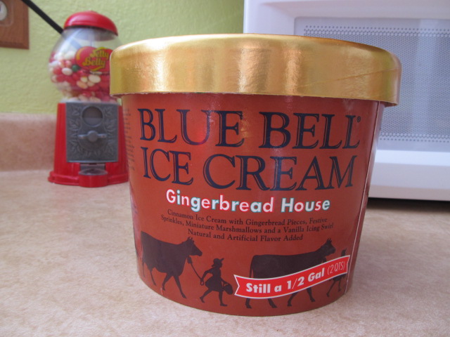 Now pick an ice cream. Since we live in Colorado, we’re blessed to be one of the states that sales Blue Bell ice cream. If you live in one of these states, or travel through one, get some Blue Bell ice cream!! It’s the best ice cream I’ve ever tasted! We found Gingerbread House ice cream on an after-Christmas sale, and decided it needed a place in our home.