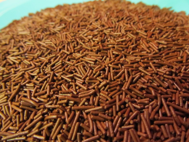 About the sprinkles: Get the smallest sprinkles possible. The big ones don’t flatter the brigadeiros. I purchased a massive bag of Ghirardelli chocolate sprinkles at a candy shop a while ago that are perfect. They will be delicious no matter what, but try to get small, thin sprinkles.